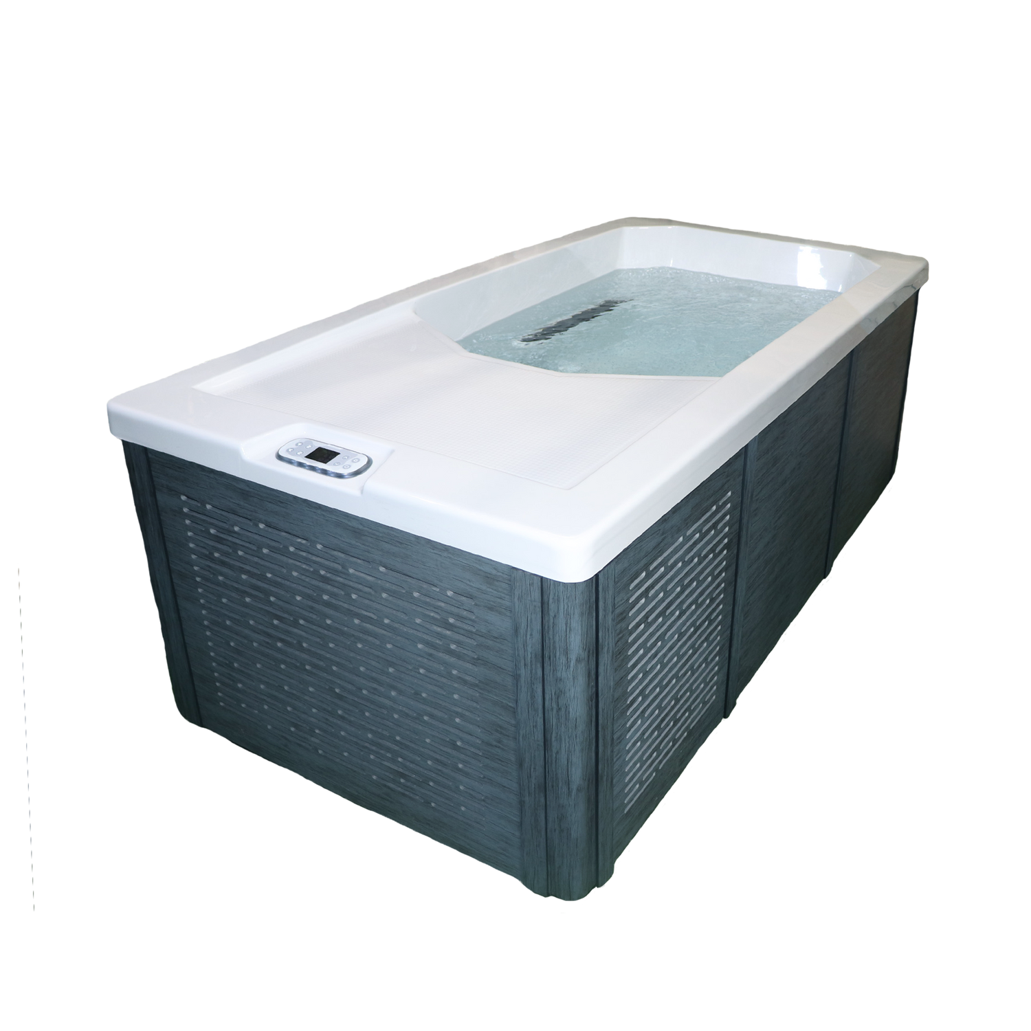 Crafted with a pure white Lucite acrylic shell and a modern limestone-finish cabinet, the CHILL1000 is as durable as it is visually striking. Built-in ozone sanitation, Glacier antimicrobial filtration, and interior and exterior LED lighting complete a premium cold therapy experience designed for indoor or outdoor, year-round use.